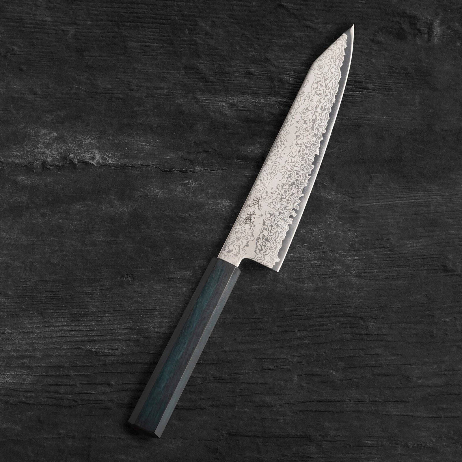 The Kiritsuke Gyuto is a sophisticated chef’s knife that blends the sharpness of a Gyuto with the distinctive angled tip of a Kiritsuke. Its slim, pointed blade excels at precision slicing and intricate cuts, while the length and shape make it versatile for chopping, dicing, and mincing. The balanced design allows for smooth, effortless cutting across a variety of ingredients.